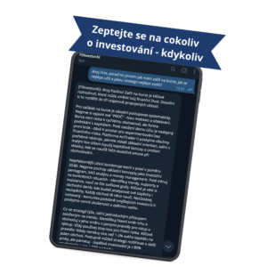 - Pracuje v reálném čase.Sleduje vaše aktivity, pomůže vyhodnocovat sentiment a navrhuje konkrétní kroky podle vašeho investičního profilu.