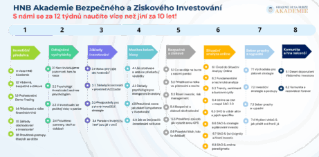 Poklona všem lidem, kteří se na HNB Akademii podíleli. Přehled a výborné zpracování. Učím se pomalu, ale myslím, že se posouvám kupředu. Dělám malé obchody, ale časté. Zkouším obchodovat bezpečně. Přístup k burze beru s respektem, baví mě to. Doporučuji HNB akademii všem lidem, kteří nejsou ochotni splácet celý život hypotéku, ale být finančně nezávislí, svobodní. Moc děkuji za nový příliv energie, adrenalinu a skvělé lidi, které poslouchám.